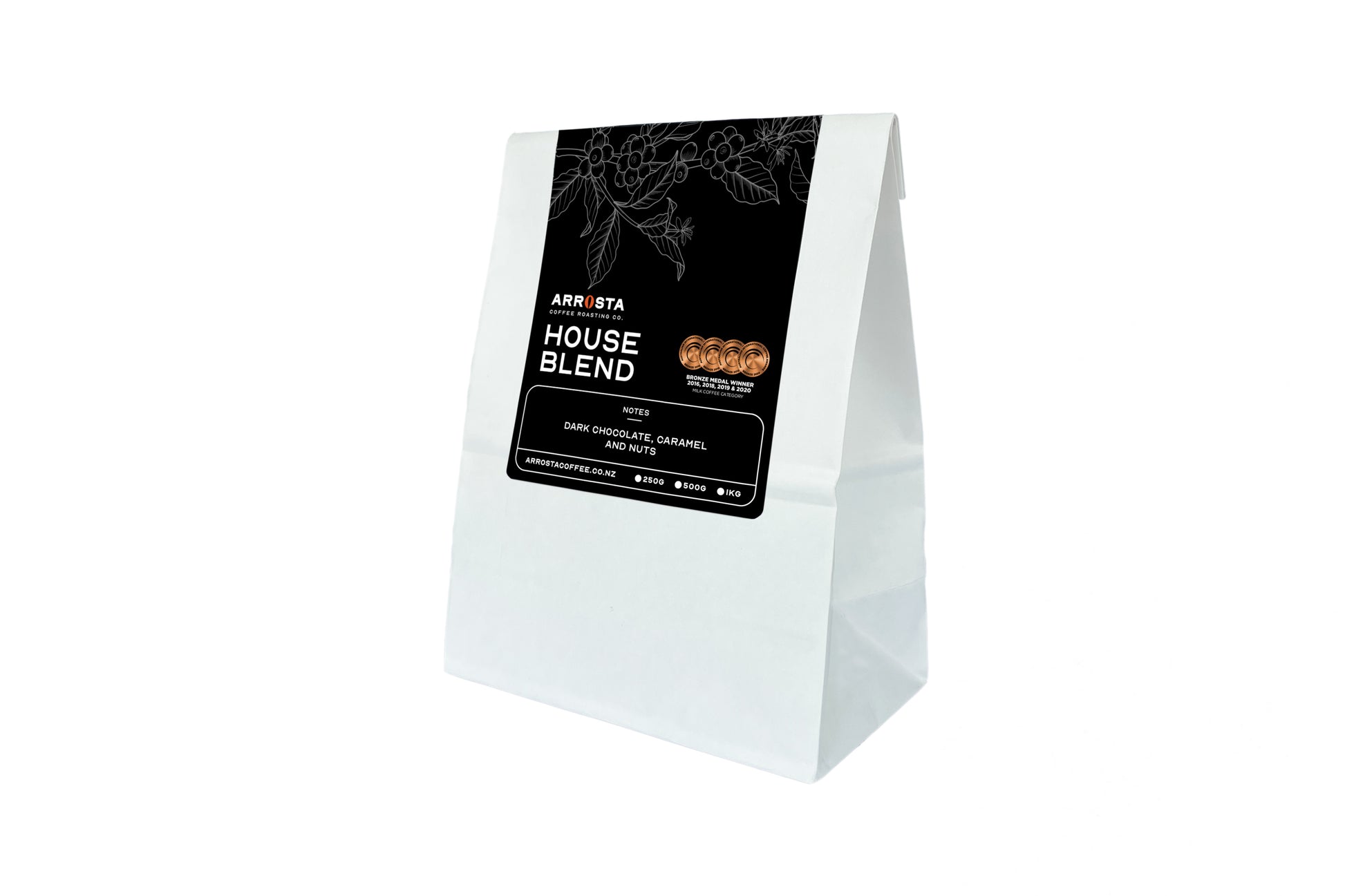 - House Blend: A balanced, cocoa, caramel, crowd-pleasing classic.