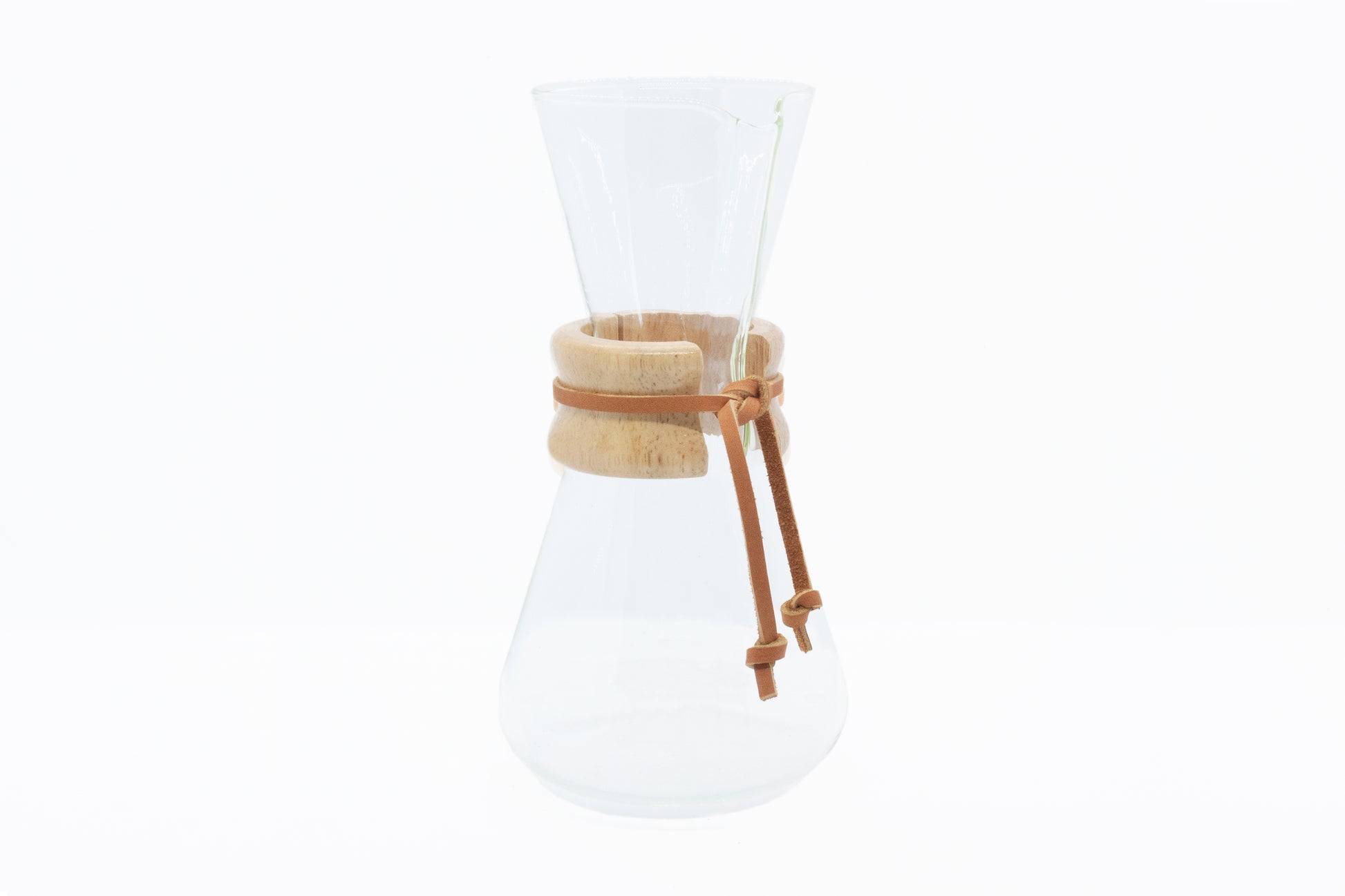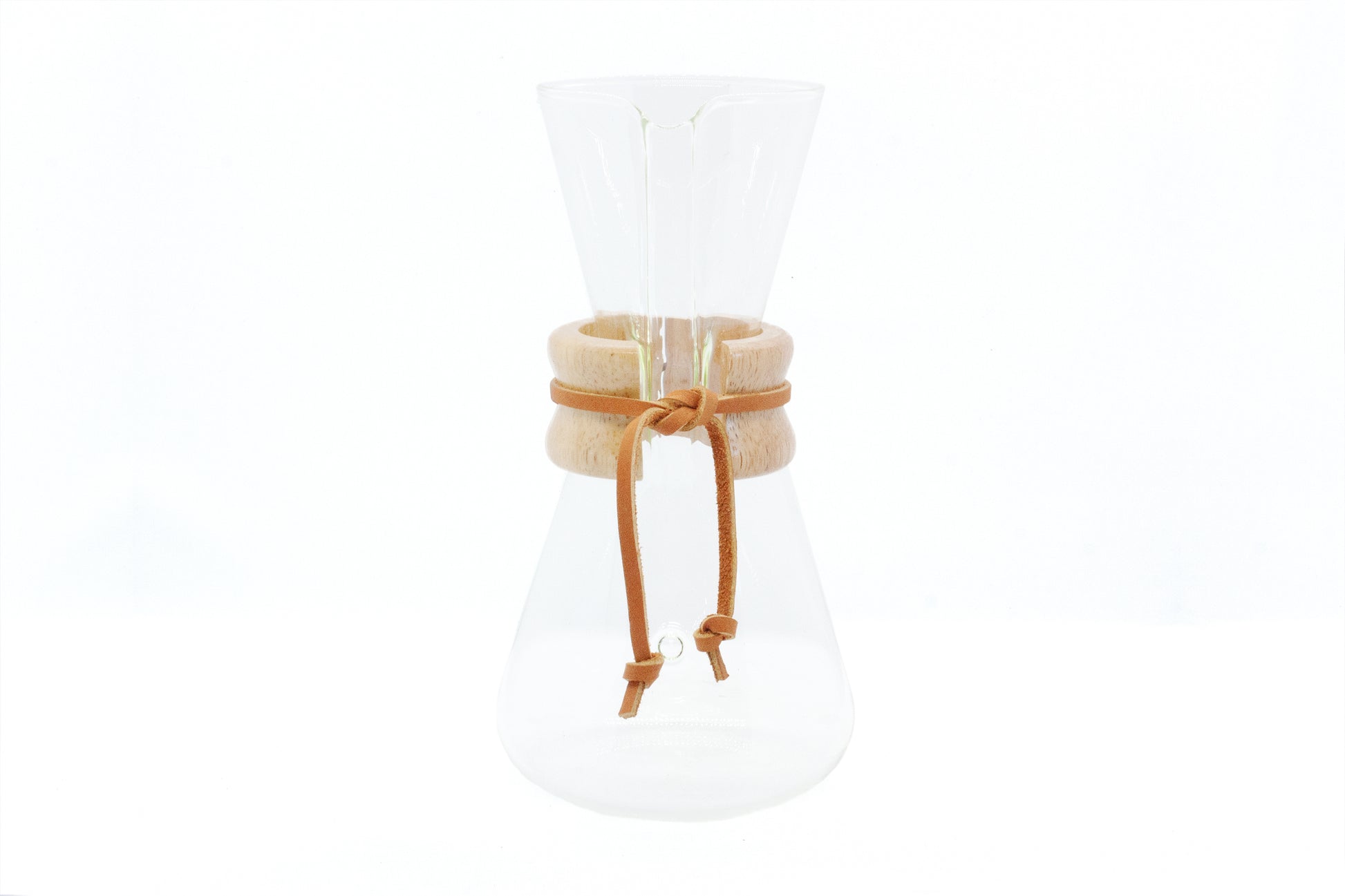 Includes a polished wood collar with leather tie. Chemex unfolded half moon filter papers sold separately.