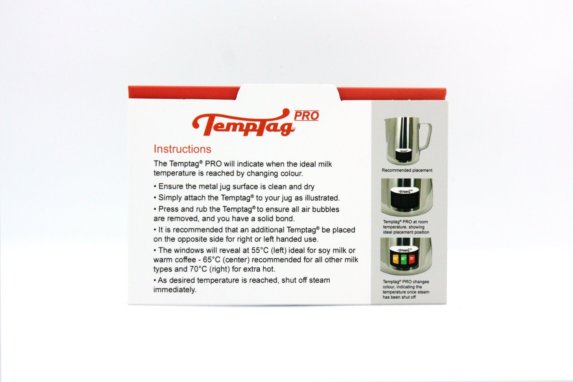 As the milk temperature increases, the colour of the Temptag changes colour, signalling when to stop steaming. You'll never need to worry about calibration like traditional thermometers. Temptags are easy to read, hygienic and have great accuracy.